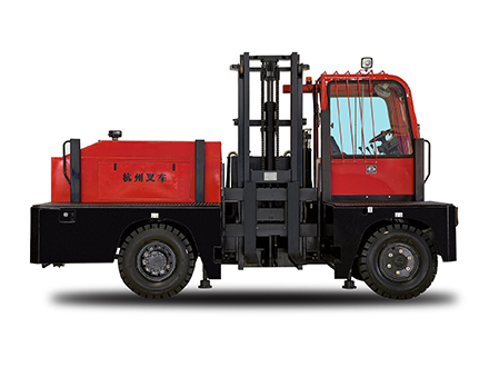 側面叉車是工業車輛的一種專用機型,它與一般平衡重式正面叉車的主要區別在于側叉的工作裝置安裝在車身側面,除可以升降、傾斜外,還可以沿車身側向伸出和收進。適用于長型貨物的裝卸、堆垛和運輸。運輸時,貨物縱向放置在貨臺上,對通道寬度的要求較小,能充分有效利用場地面積。因此廣泛適用于石油化工、冶金、交通運輸、建筑等行業中,裝卸、搬運長形重物(如:鋼管、型鋼、電線桿、木材等)尤為適用,可大大提高工作效率。