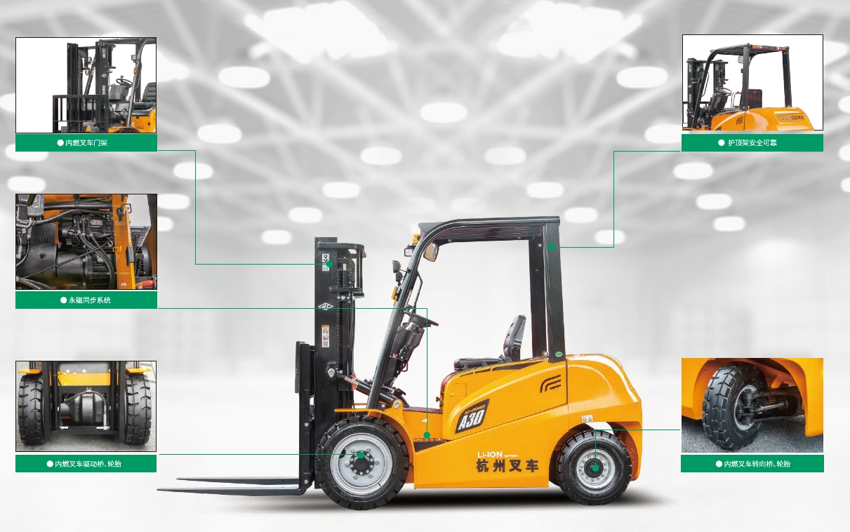 整車內部結構在上一代叉車的基礎上進行優化升級,通過采用成熟的零部件為客戶提供了一款更具性價比的產品。